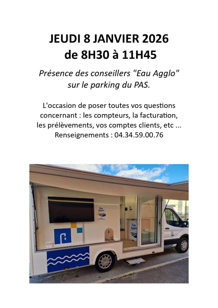 LUNDI 8 DECEMBRE 2025 de 13h30 à 16h. L’occasion de poser toutes vos questions concernant : les compteurs, la facturation,les prélèvements, vos comptes clients, etc …Renseignements : 04.34.59.00.76